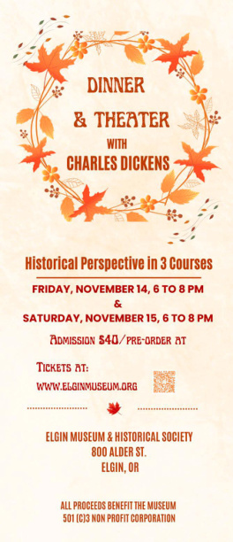 Historical Perspective in 3 Courses FRIDAY, NOVEMBER 14, 6 TO 8 PM SATURDAY, NOVEMBER 15, 6 TO 8 PM ADMISSION $40 / PRE-ORDER AT TICKETS AT: http://www.elginmuseum.org