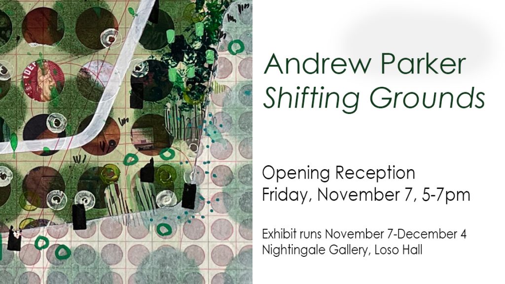 In conjunction with the exhibition, Parker will present a public artist talk on his studio practice and the conceptual framework behind the exhibit. The talk will take place on Wednesday, November 5, at 6 p.m. in Huber Auditorium, Badgley Hall.